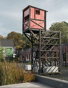 Effenaar directeur Jos Feijen zag de Urban Hunting Lodge voor het eerst op de Kleine Berg. Het was tijdens de Dutch Design Week van 2012. “Hee, daar staat iets mafs, dacht ik meteen.” Feijen klom erin: “Een bevreemdende ervaring.” Tijdens de DDW van dit jaar staat de wachttoren in de Dommeltuin achter de Eindhovense muziektempel.