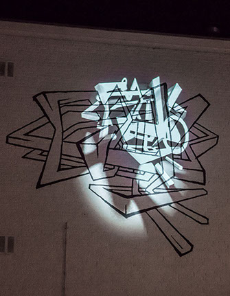 Interstices in a synaptic space, by studio Afterlight, resembles the human brain through light on a wall. The installation toys with darkness, light and colour to create abstract compositions that are carefully build up to be finally torn down again.