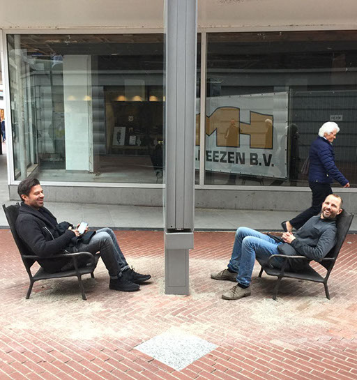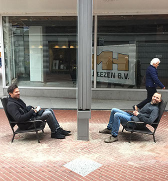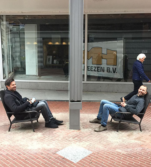 “It focuses on the tension between art and commerce,” says Maarten Baas of his contribution to the RoundAbout Design Route, which will be open during Dutch Design Week (DDW). The designer represents this area of tension with a shelter. On either side of an old-fashioned billboard are two bronze seats made by Eindhoven’s Beeldenstorm Foundation.