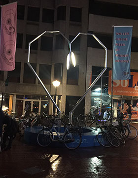 “The posts are coming along,” says Koot on the phone. And only slightly delayed. The lamppost heart will go up on Saturday, 22 October. It will be anchored to the ground “for the chic-factor.”
